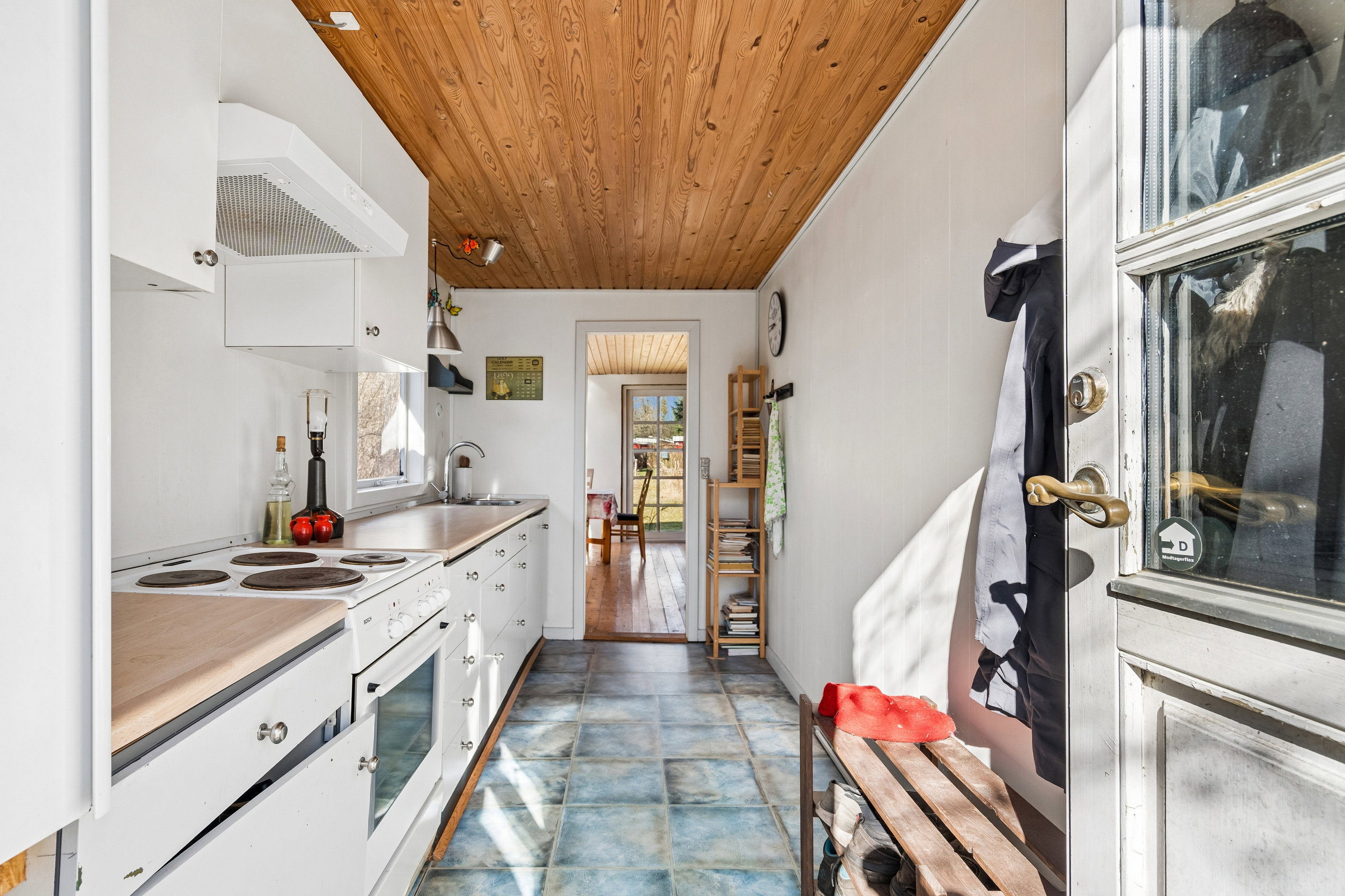 Køkkenet er funktionelt indrettet med god arbejdsplads, og boligen rummer desuden et soveværelse samt badeværelse. Planløsningen er enkel og praktisk, hvilket gør huset nemt at anvende både til korte ophold og længere ferier.